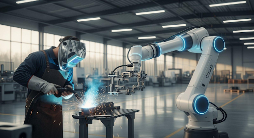 Cobots – also kollaborative Roboter – können direkt mit Menschen zusammenarbeiten und sind besonders für kleinere Firmen geeignet, die flexibel bleiben möchten. Sie übernehmen monotone oder schwere Aufgaben, können aber leicht umprogrammiert werden und bieten so eine große Anpassungsfähigkeit.